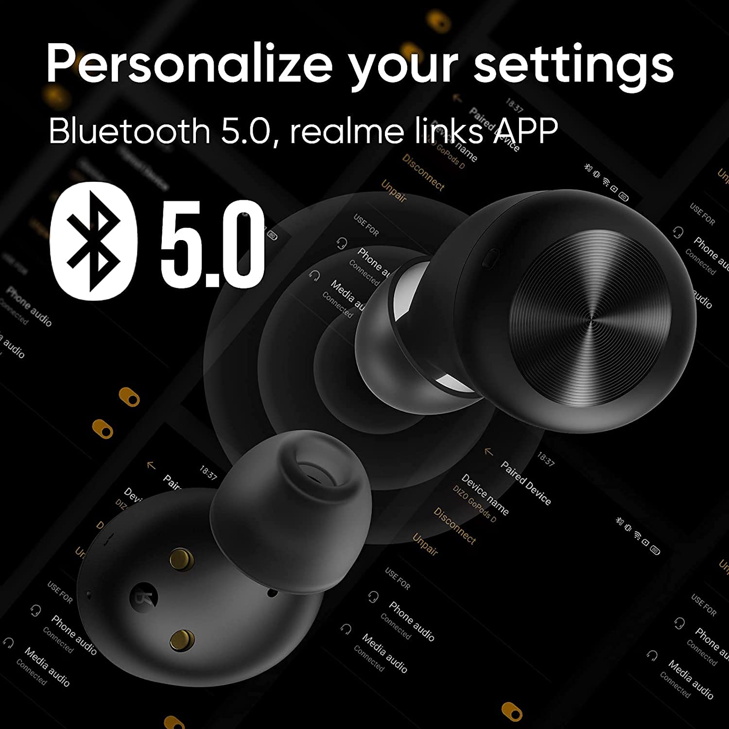 DIZO GoPods D Bluetooth Earbuds Wireless Headphones, Clear Calls, Environmental Noise Cancellation, Deep Bass Boost, Waterproof Stereo TWS Earphones, Touch Control, Low Latency, Sports Headsets Black